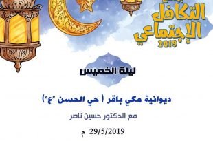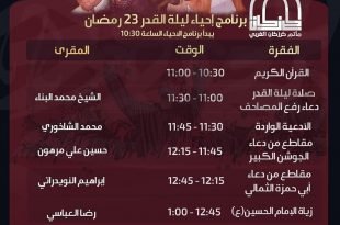 أكمل القراءة »with ・・・ برنامج إحياء ليلة القدر الشريفة 23 ليلة الأربعاء 28-5-2019 ملاحظة: س…
