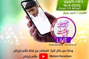 أكمل القراءة »– . . ۩ ﻣأﭠم ﻛرزﻛٱن .. . . . دعاء كميل 16/4/2020 الساعة 7:15 م . . القارئ / أح…