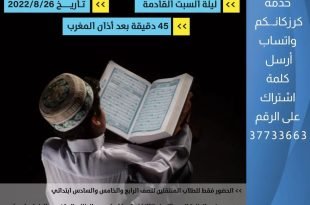 تعلن لجنة تعليم القرآن الكريم عن استئناف التعليم ليلة السبت القادمة الموافق 26_8…