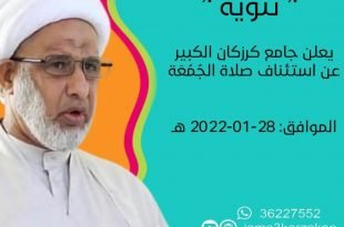 أكمل القراءة »تنويه ۩ جۚامۘـ؏ ڪڕزڪٰٱ̍ن . . تستأنف صلاة الجمعة في جامع كرزكان الكبير المواف…