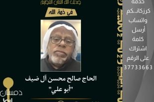 . #وفيات_دمستان . . الخميس 2022.1.27 . . بسم الله الرحمن الرحيم . . ( يَا أَيَّتُهَا النَّفْسُ الْمُطْمَئِنَّةُ إرْجِعِي إِلَى رَبِّكِ رَاضِيَةً مَّرْضِيَّةً فَادْخُلِي فِي عِبَادِي وَادْخُلِي جَنَّتِي ). . صدق الله العلي العظيم. . • بقلوب مؤمنة بقضاءِ الله وقدره.. . • إنتقل إلى رحمة الله وعفوه.. . …