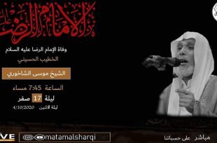 أكمل القراءة »برنامج مأتم الإمام الحسين “ع” الشرقي في ذكرى استشهاد الإمام الرضا عليه السلام …