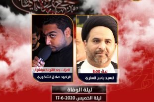 الليلة: 🏴 بَرنامجْ مَأتم كَرزكّان للرجال ذكرى إستشهاد الإمام الصادق (ع) ١٤٤١ هـ | 2020 م . 🔸️ ليلة الوفاة ليلة الخميس 17/6/2020 . • ليلاً ( 8:00 م ) “السيد ياسر الساري” . 🔸️ *موكب العزاء* بعد القراءة مباشرة (الرادود صادق الشاخوري) . 🔸️ يوم الوفاة يوم الخميس 18/6/2020 …