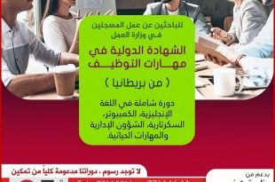 أكمل القراءة »إعلان مدفوع: للباحثين عن عمل المسجلين فـي وزارة العمل الشهادة الدولية في مهـــ…