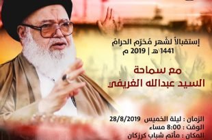 – . . ۩ ﻣأﭠم ﻛرزﻛٱن .. . . 🏴إستقبالاً لشَهر مُـحَرّم الحرامْ 1441 هـ | 2019 م . . مع {سماحة السيد عبدالله الغريفي} . . 🔽الزمان : ليلة الخميس 28/8/2019 . ⏰ الوقت : 8:00 مساء . ♢ المكان : مأتم شباب كرزكان . . ▪ ملاحظة : …
