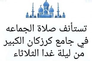 أكمل القراءة »تستأنف صلاة الجماعة في جامع كرزكان الكبير بعد التوقف بدا من ليلة الثلاثاء المواف…