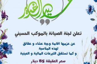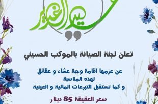 تعلن لجنة الصيانة بالموكب الحسيني عن استقبال المساهمات لعقيقة عيد الغدير …
