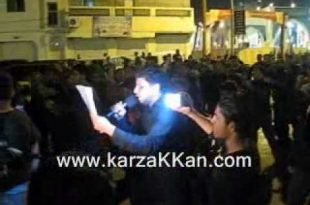 الرادود علي عيسى مرهون في موكب عزاء قرية كرزكان بمملكة البحرين ليلة السابع من المحرم 1431هـ، الموافق 23 ديسمبر 2009م. المصدر