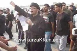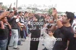 الرادود ملا نذير الرماحي في موكب عزاء قرية كرزكان بمملكة البحرين يوم التاسع من المحرم 1431هـ، الموافق 26 ديسمبر 2009م. المصدر