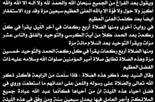 أعمال ليلة ويوم عاشوراء مأجورين وعظم الله أجركم بمصاب أبي عبدالله الحسين الليلة العاشرة ليلة العاشوراء وقد أورد السيد في (الاقبال) لهذه الليلة أدعية وصلوات كثيرة بما لها من وافر الفضل منها الصلاة مائة ركعة كلّ ركعة بالحمد وقل هو الله أحد ثلاث مرّات ويقول بعد الفراغ من الجميع: سُبحانَ …