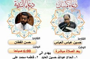 أكمل القراءة »برنامج مأتم كرزكان للرجال في ذكرى وفاة السيدة أم البنين عليها السلام …