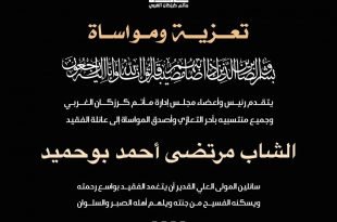 – . . بسم ٱلله الرَّحْمٰنِ الرَّحِيـمِ {كُلُّ نَفْسٍ ذَآئِقَةُ الْمَوْتِ وَإِنَّمَا تُوَفَّوْنَ أُجُورَكُمْ يَوْمَ الْقِيَامَةِ فَمَن زُحْزِحَ عَنِ النَّارِ وَأُدْخِلَ الْجَنَّةَ فَقَدْ فَازَ وَما الْحَيَاةُ الدُّنْيَا إِلاَّ مَتَاعُ الْغُرُورِ } صدق الله العلي العظيم . . تتقدم إدارة مأتم كرزكان للرجال بخالص العزاء والمواساة لعائلة المرحوم . . “الشاب مرتضى أحمد عبدالله …