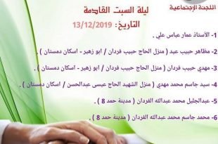 – . . بسم ٱلله الرَّحْمٰنِ الرَّحِيـمِ {كُلُّ نَفْسٍ ذَآئِقَةُ الْمَوْتِ وَإِنَّمَا تُوَفَّوْنَ أُجُورَكُمْ يَوْمَ الْقِيَامَةِ فَمَن زُحْزِحَ عَنِ النَّارِ وَأُدْخِلَ الْجَنَّةَ فَقَدْ فَازَ وَما الْحَيَاةُ الدُّنْيَا إِلاَّ مَتَاعُ الْغُرُورِ } صدق الله العلي العظيم . . تتقدم إدارة مأتم كرزكان للرجال بخالص العزاء والمواساة لعائلة المرحومة . . “الحاجة حصة علي احمد …
