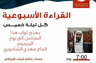 أكمل القراءة »برنامج القرآءة الأسبوعية بمأتم كرزكان للرجال ليلة الخميس …