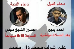 أكمل القراءة ». إعلان دعاء كميل ودعاء الندبة بجامع كرزكان الكبير لهذا الإسبوع 4 يناير 2018 م …