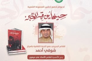 •• مركز كرزكان الثقافي والرياضي .. اللجنة الثقافية .. •• تدعوكم لحضور تدشين المجموعة الشعرية .. ” حينما يُورقُ الحِبر ” للشاعر البحريني عضو اللجنة الثقافية بالمركز شوقي أحمد بدعم وتمويل من مركز كرزكان الثقافي و الرياضي .. عن دار فراديس •• يدير الأمسية الشاعر الأستاذ علي مرهون وذلك في …
