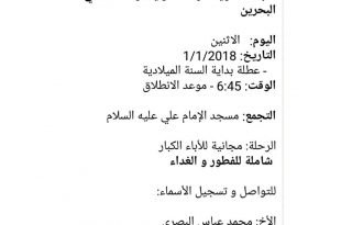تنظم اللجنة الاجتماعية بالموكب الحسيني رحلة الأباء السنوية لمراقد الأولياء و العلماء في البحرين للتواصل و تسجيل الأسماء: الأخ: محمد عباس البصري 36452847 الأخ: سيد مصطفى السيد حميد 36509988 #كرزكان #كرزكانكم #أخبار_كرزكانكم #منوعات_كرزكانكم #قريتنا #أخبار_القرية #قريتنا_الحبيبة #قرية_كرزكان #أخبار_قرية_كرزكان #قرى_البحرين #مملكة_البحرين #البحرين #بحريننا #bahrain #karzakan #karzakancom #karzakancom_news #إعلانات_مؤسسات_كرزكان المصدر