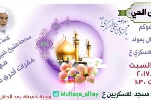 أكمل القراءة »مُلْتَقَى الحَيِّ يدعوكم للأحتفال *بمولد الأمام الحسن العسكري عليه السلام* بمسج…