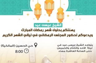 أكمل القراءة »المجالس القرآنية في شهر رمضان مجلس الشيخ عيسى عيد حفظه الله لنشر إعلان مجالسك…