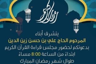 أكمل القراءة »المجالس القرآنية في شهر رمضان مجلس المرحوم الحاج علي حسن زين الدين لنشر إعلان…