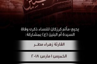 أكمل القراءة »برنامج الخطابة لمأتم كرزكان للنساء في ذكرى وفاة السيدة أم البنين (ع) …