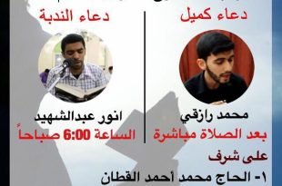 أكمل القراءة ». إعلان دعاء كميل ودعاء الندبة بجامع كرزكان الكبير لهذا الإسبوع 1 مارس 2018 م …