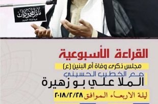 أكمل القراءة »برنامج الخطابة لمأتم كرزكان الغربي في ذكرى شهادة ام البنين (ع) …