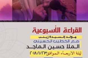 أكمل القراءة ». برنامج القراءة الأسبوعية بمجلس الحاج صالح عاشور: مولد السيدة زينب (ع) بمشاركة …