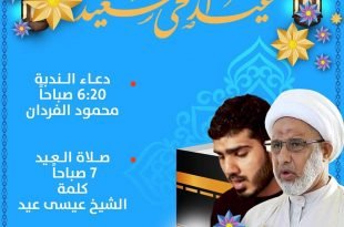 – . . ۩ ﻣأﭠم ﻛرزﻛٱن .. . . . برنامج يوم عيد الأضحى المبارك . . . 🔸️ دعاء الندبة 6:20 صباحاً (محمود الفردان) . . . 🔸️ صلاة العيد 7:00 صباحاً و كلمة (الشيخ عيسى عيد) . . و ذلك عبر البث المباشر على وصلة قناة مأتم كرزكان …
