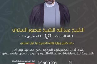أكمل القراءة »المجلس الحسيني الاسبوعي – الشيخ عبدالله الشيخ منصور الستري يمكنكم متابعة المجل…