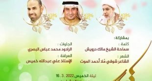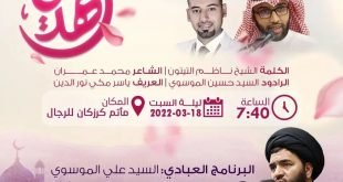 أكمل القراءة »برنامج احتفال مأتم كرزكان الغربي بمولد الإمام المنتظر(ع) العرافة:محمد عبدالله ع…