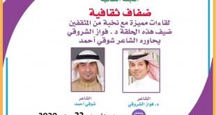 •• مركز كرزكان الثقافي والرياضي •• •• اللجنة الثقافية •• ستقيم اللجنة الثقافية بمركز كرزكان الثقافي والرياضي لقاءات متميزة مع نخبة من الأدباء و المثقفين خلال برنامجها الأدبي الثقافي لهذا العام ٢٠٢٠م .. تحت عنوان •• ضفاف ثقافية •• وسيكون ضيفنا لهذه الحلقة هو الشاعر الدكتور فواز الشروقي .. وذلك …