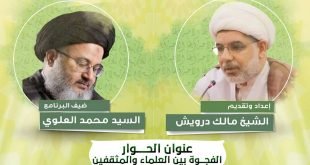 – . ۩ ﻣأﭠم ﻛرزﻛٱن .. . البرنامج الحواري المباشر أيها الأحبة . 🔸️ إعداد و تقديم (الشيخ مالك درويش) . 🔸️ ضيف البرنامج (السيد محمد العلوي) . عنوان الحوار {الفجوة بين العلماء والمثقفين} . ليلة الاثنين الموافق 12/7/2020 الساعة 8:30 م . تابعونا : malek_darwish . ⚠️ قناة مأتم …