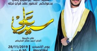 أكمل القراءة »الليلة: تتشرف عائلة السيد أحمد إبراهيم رضي بدعوتكم لحضور عقد قران نجلهم سيدعلي…..