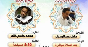 أكمل القراءة »اعلان دعاء كميل ودعاء الندبة لهذا الاسبوع دعاء كميل القارئ خليل عبدالرسول دعاء…