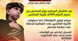 ♦️ *موكب أبناء الطف* ♦️ عزاء الاشبال المركزي يوم السادس من محرم الحرام 1441هـ بقرية السنابس سيتم توفير المواصلات كما سيتواجد الأخوة القائمين على الفعالية للحفاظ على سلامة ابناءكم لتسجيل ابناءكم عبر الواتساب : باسم محمد علي الشاخوري 33778592 جعفر أحمد فردان 36601916 علي عبدالوهاب البصري 34397940 ⚠️ ملاحظة : …