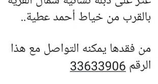أكمل القراءة ». عثر على دبلة نسائية شمال القرية بالقرب من خياط أحمد عطية.. من فقدها يمكنه التو…