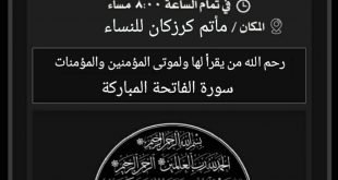 أكمل القراءة »تأبين المرحومة زهرة عباس إبراهيم ليلة الاثنين القادمة بمأتم كرزكان للنساء …