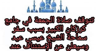 أكمل القراءة »تتوقف صلاة الجمعة في جامع كرزكان الكبير بدأ من الجمعة القادمة بسبب سفر سماحة الش…