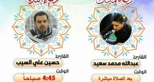 أكمل القراءة »اعلان دعاء كميل ودعاء الندبة لهذا الاسبوع دعاء كميل القارئ عبدالله محمد يعيد دع…