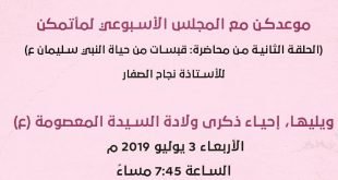 أكمل القراءة »برنامج المجلس الأسبوعي لمأتم كرزكان للنساء …