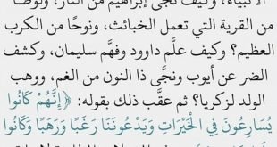 كتبت سمر أبو حسن المسارعة إلى الخيرات الدعاء و التضرع الخشوع أدوية تجلب السعادة و تحقيق المعجزات قبل أن تقرأ تأمل : {إِنَّهُمْ كَانُوا يُسَارِعُونَ فِي الْخَيْرَاتِ وَيَدْعُونَنَا رَغَبًا وَرَهَبًا وَكَانُوا لَنَا خَاشِعِينَ} ثم عش بقلبك مع نبي الله زكريا : {وَزَكَرِيَّا إِذْ نَادَى رَبَّهُ رَبِّ لا تَذَرْنِي فَرْدًا وَأَنْتَ …
