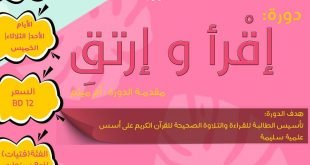 أكمل القراءة »إعلان مدفوع: يعلن مركز منتظرات المهدي عن فتح باب التسجيل لتعليم القرآن بالتجويد …