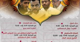 أكمل القراءة ». برنامج قراءة دعاء كميل ليلة الجمعة يبدأ في تمام الساعة 11:15 مساء بمشاركة القا…