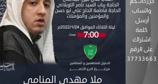 أكمل القراءة »سيقام مجلس حسيني يهدي ثوابه إلى روح المراحيم: ١_الحاج حميد أحمد عبد العال. ٢_ال…